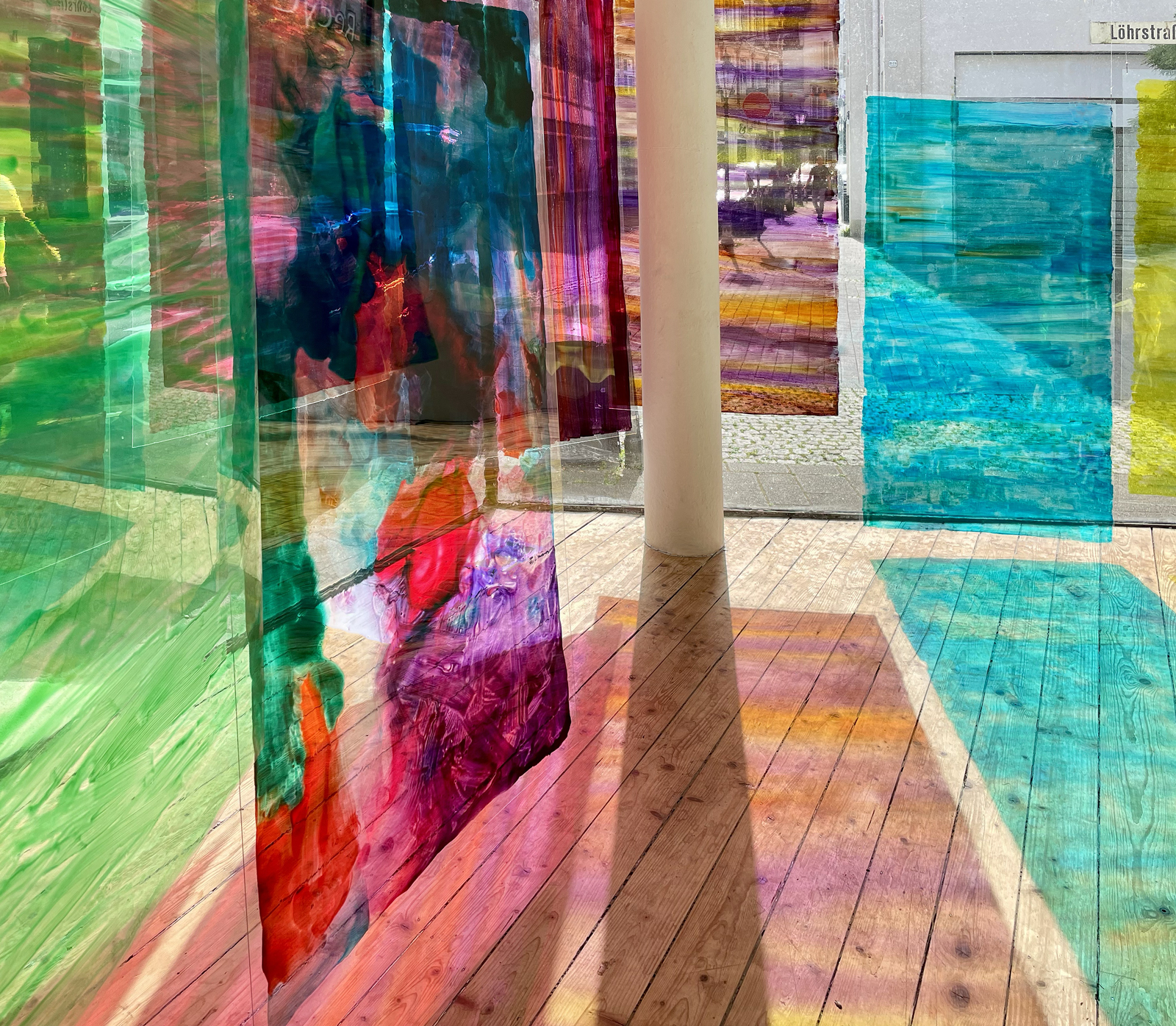 Die Ausstellung INTERFERENZEN ist während der Sommermonate jederzeit von außen einsehbar.